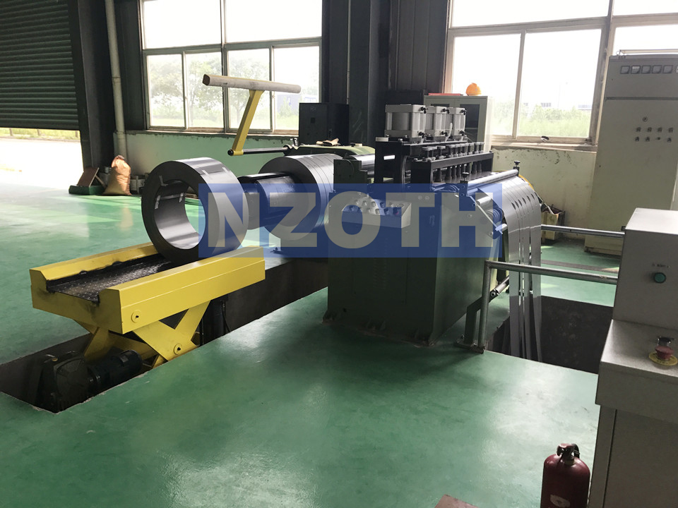 本設(shè)備是將硅鋼片剪切成條料的專用設(shè)備。主要由放料,收卷,縱剪,張緊等機(jī)構(gòu)組成。本設(shè)備采用國際先進(jìn)的拉剪工藝,刀具采用硬質(zhì)合金滾剪刀,全線運(yùn)行準(zhǔn)確可靠。